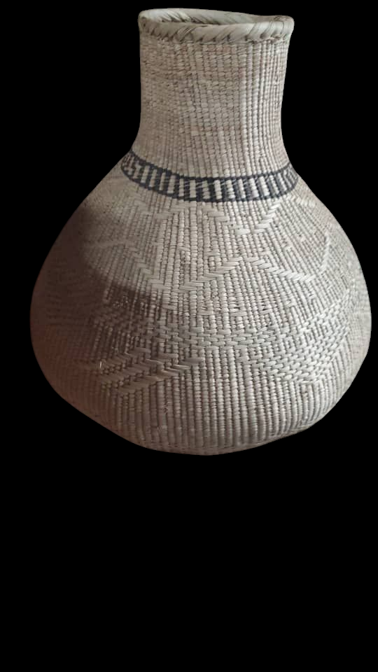 Materials: Ilala Palm, Wild Grass Height: 40 cm Circumference: 115 cm Shaped like traditional clay cooking pots, Nongo...