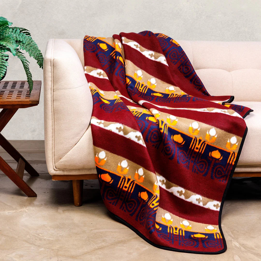 Moholobela Maroon Camel Throw – Rooted in Basotho tradition, this throw features a rich maroon and camel color palette, symbolizing warmth and cultural heritage. A luxurious and meaningful addition to any space.